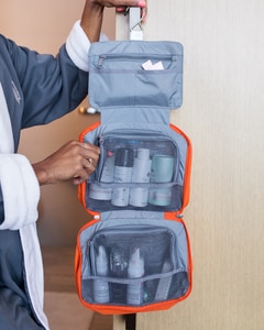 Love the design and material. I love that the size is not too large but when you unzip it there is so much space. I travel often and needed a new toiletry. This one is perfect and build tough! Stoked I found this!